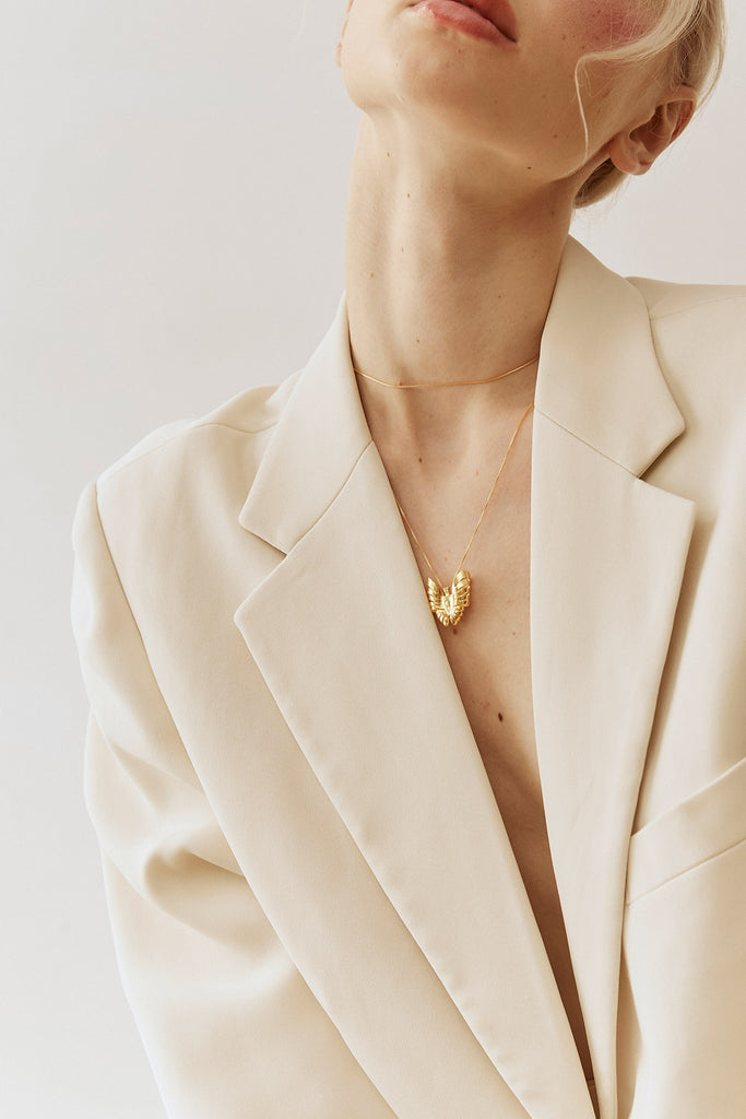Beyond a love story, the myth becomes a poetic journey, a metamorphosis of self, that reveals the depths of one’s resilience and fortitude. The Psyche Wings pendant pays homage to this narrative and celebrates the emergence of a warrior soul.